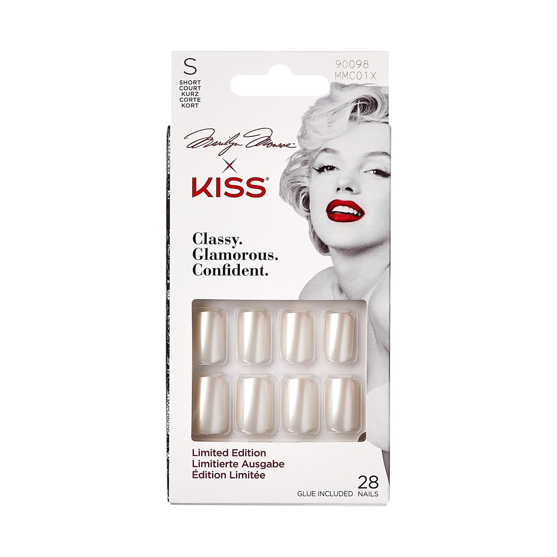 Marilyn Monroe x KISS Limited Edition Short Square Glue-On Nails, Solid White, 28 Pieces